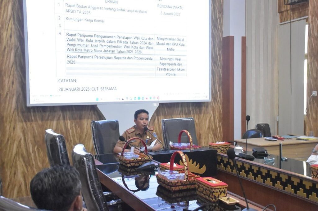 Kota Metro (Ungkap Tipikor) – Badan Musyawarah (Banmus) DPRD Kota Metro mengadakan rapat dengar pendapat bersama Sekretaris DPRD Kota Metro pada Senin, 6 Januari 2025. Pertemuan ini berlangsung di Ruang OR DPRD Kota Metro dengan agenda utama membahas berbagai hal strategis terkait perencanaan dan pelaksanaan program kerja yang akan dijalankan dalam waktu dekat.