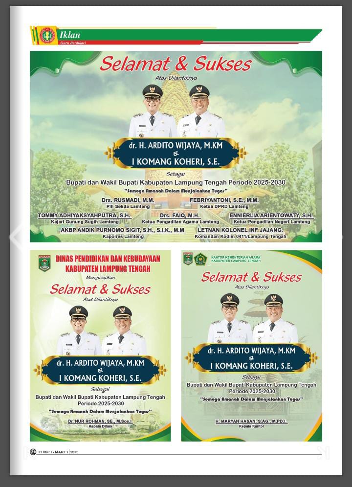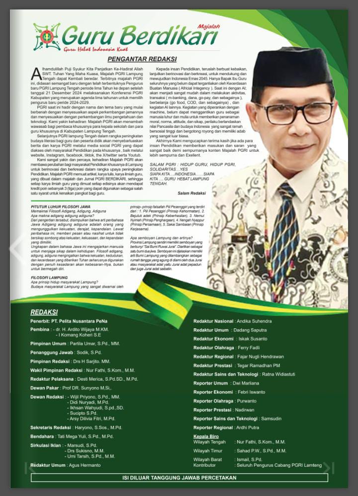 Lampung Tengah (Ungkap Tipikor) – Beredarnya salah satu majalah bergambar Bupati Lampung Tengah karya Persatuan Guru Republik Indonesia (PGRI) Kabupaten Lampung Tengah diduga sebagai ajang konflik kepentingan Guru – Guru yang tergabung dalam struktur redaksi majalah guru Berdikari yang diduga didalangi oleh Partila Umar selaku Ketua PGRI Kabupaten setempat.