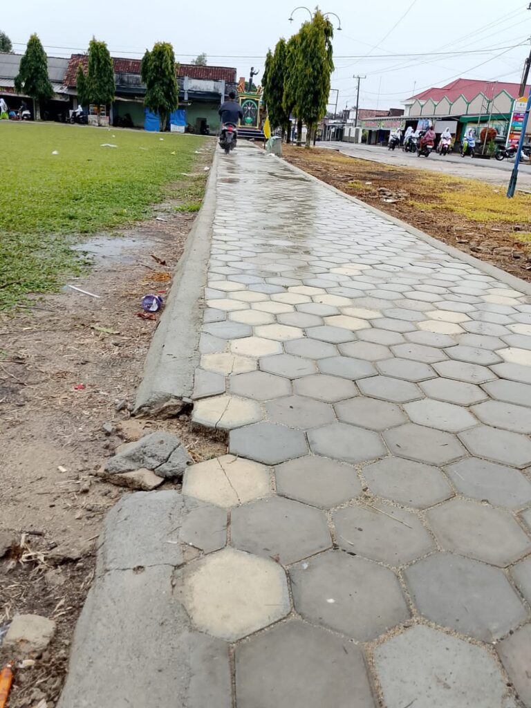 dari hasil investigasi awak media dilokasi pembangunan jalan paving block, dan lapangan futsal menemukan bahan matrial paving block dan lapangan futsal banyak pecah dan banyak yang retak retak kuat dugaan kwalitas bahan matrial paving block dan. Lapangan futsal kurang bagus dan diduga memakai bahan matrial tidak standar mutu, sehingga akan berdampak pada hasil pembangunan jalan paving block dan lapangan futsal kini tidak akan kuat dan tahan lama.membuat fasilitas ini tak lagi layak digunakan.untuk masyarakat jogging dan pemain bola futsal membuat fasilitas ini tak lagi layak digunakan,menimbulkan kekhawatiran bagi masyarakat yang mencoba memanfaatkannya.