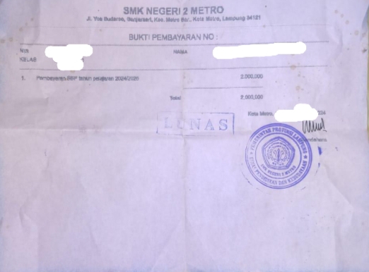 Metro (Ungkap Tipikor) – Terkait hak jawab yang disampaikan kepala SMKN 2 Metro Tentang adanya pungli yang dilakukan pihak sekolah melalui perpanjangan tangan ketua komite dengan besaran anggaran Rp 3.500.000 serta bantuan PIP yang menjadi hak siswa namun semua dikendalikan oleh pihak sekolah yang mana pencairan PIP tersebut dilakukan secara kolektif oleh pihak sekolah.