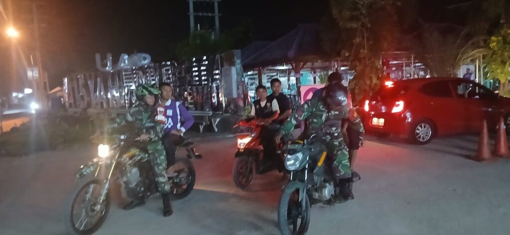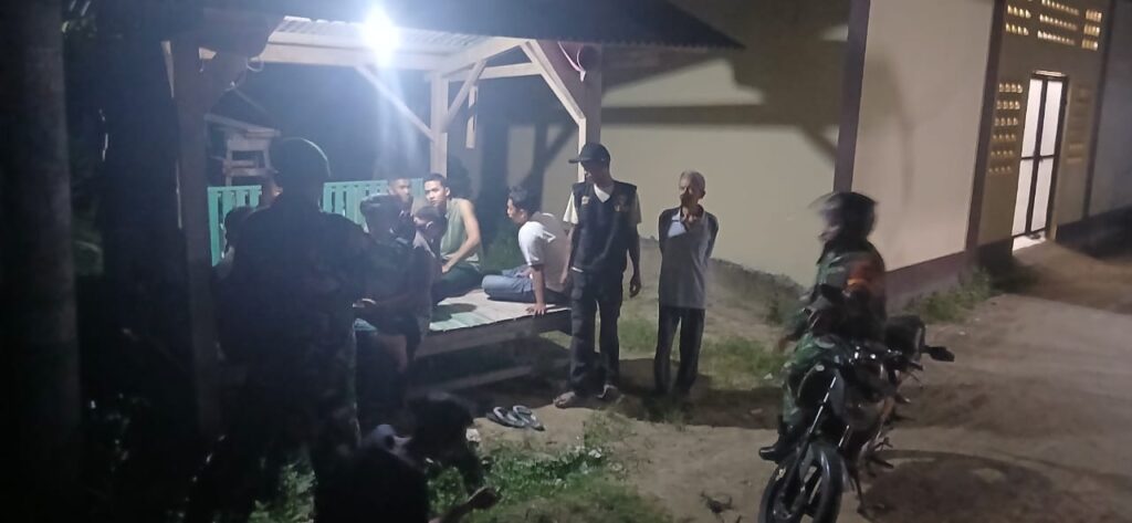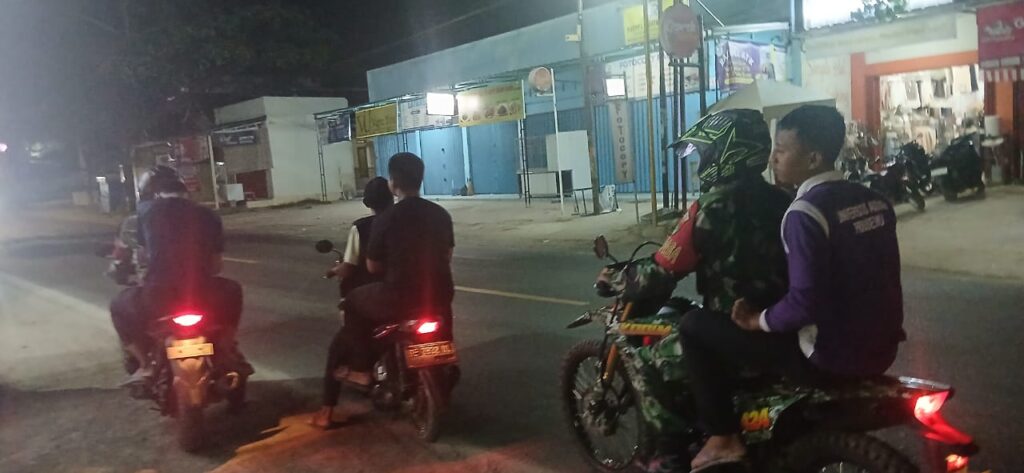 Gading Rejo (Ungkap Tipikor) – Jaga kondusifitas Pekon Tambahrejo Koramil 424-07/Gadingrejo dan Anggota Kodim 0424/Tanggamus bersama Karang Taruna, FKPPI dan ikut Mahasiswa Universitas Aisyah Pringsewu serta warga Pekon Tambahrejo lakukan kegiatan Siskamling.