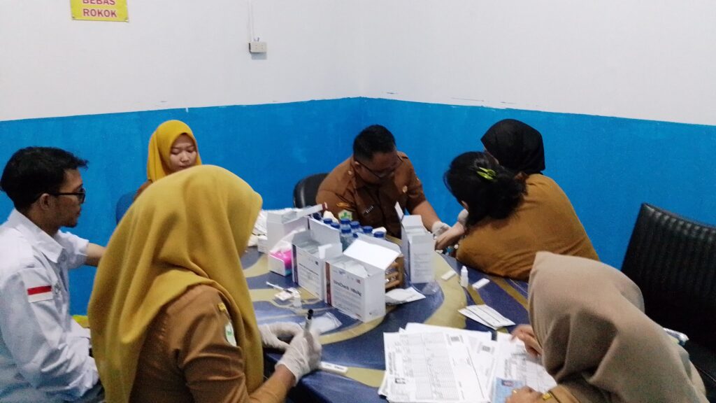 Sebanyak 43 orang relawan mengikuti pemeriksaan Rapid Test Triple Eliminasi yang meliputi deteksi penyakit Hepatitis B, HIV, dan Sifilis. Berdasarkan hasil pemeriksaan yang telah dilakukan, seluruh relawan dinyatakan dalam kondisi non reaktif. Hal ini menjadi kabar baik sekaligus menunjukkan bahwa kondisi kesehatan para relawan berada dalam keadaan aman dan terkendali.