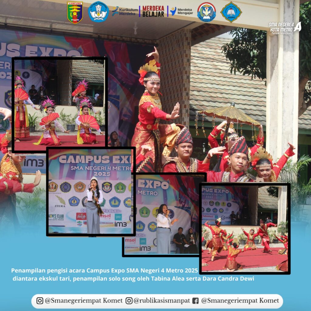 “Semoga seluruh siswa-siswi kelas XII SMA Negeri 4 Metro bisa diterima di Perguruan Tinggi yang diinginkan. Semoga kegiatan Campus Expo 2025 ini dapat memberikan kemudahan dan juga pengetahuan kepada seluruh siswa-siswi kelas XII SMA Negeri 4 Metro guna menentukan perguruan tinggi yang akan dipilih. Kegiatan positif yang dilaksanakan hari ini mampu mendukung SMA Negeri 4 Metro untuk terus berkembang pesat dengan layanan yang humanis dan terintegritas sebagai sekolah favorit di Kota Metro,”pungkas Awet menutup sambutan.